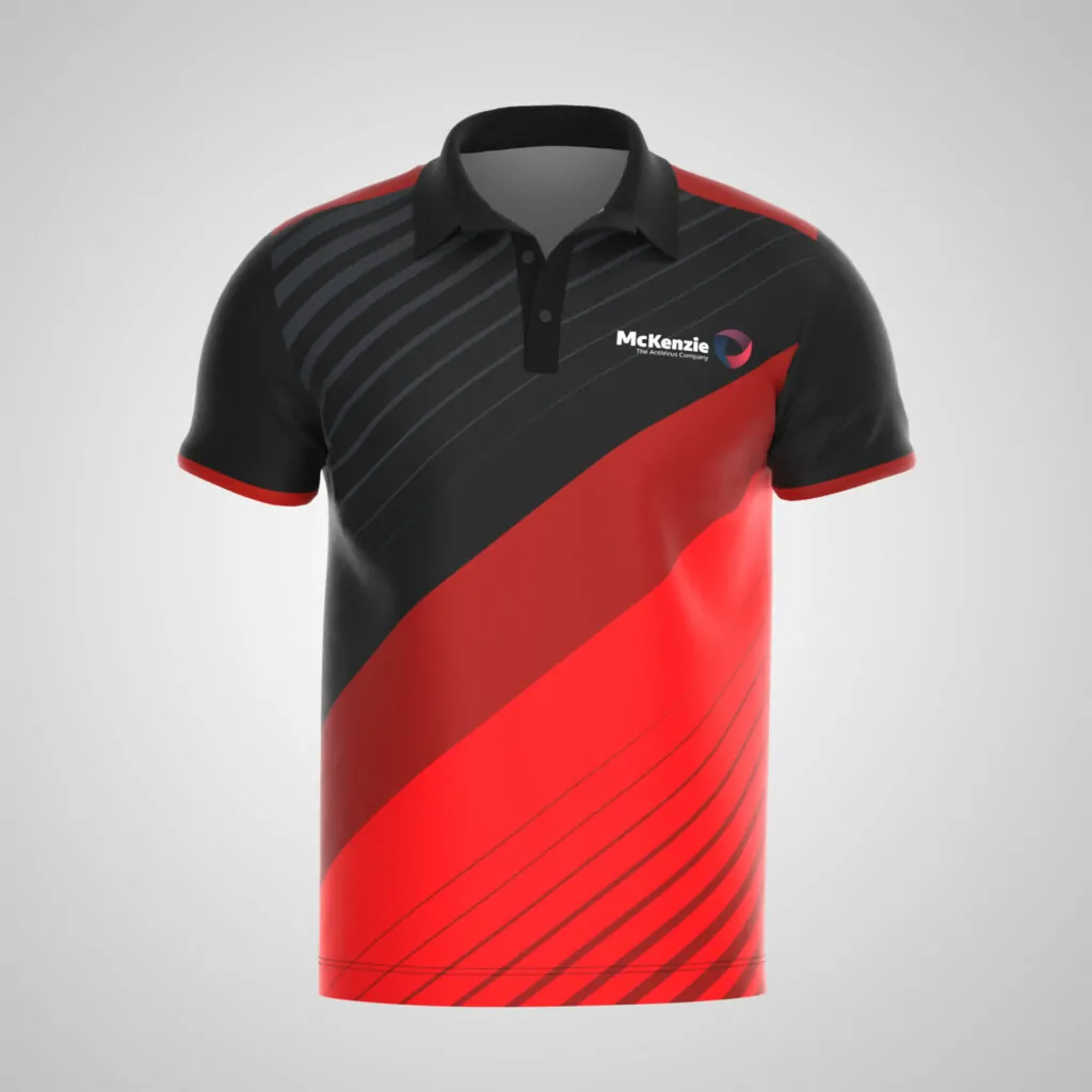 A full sublimation polo shirt is a kind of shirt that is produced using a printing process called sublimation. This involves transferring dye onto the fabric of the shirt using heat, which results in a vivid and durable print that covers the entire shirt.