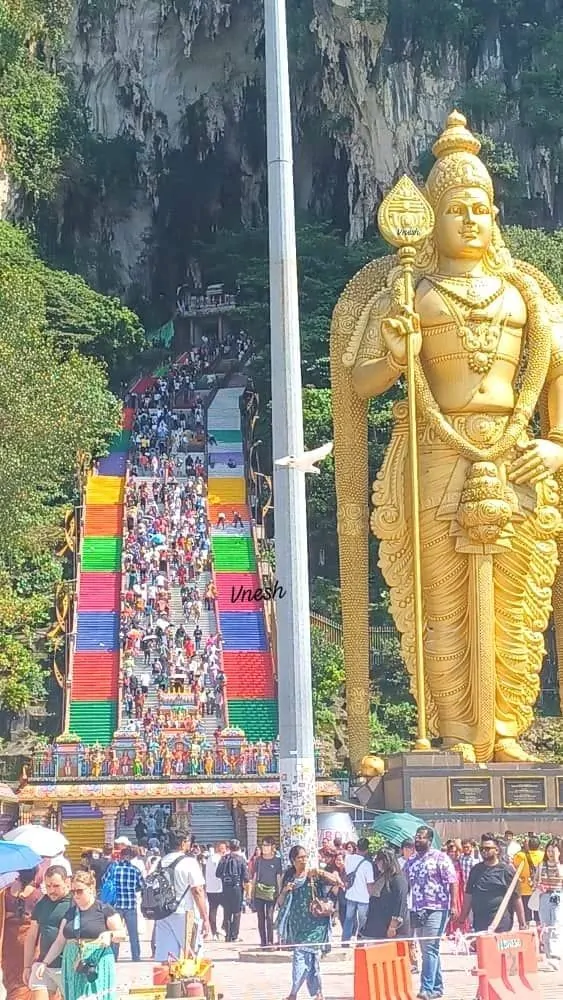 Standing at an impressive height of 42.7 meters, the golden statue of Lord Murugan is the tallest in Malaysia and the second tallest statue of a Hindu deity in the world. It is a symbol of faith and dedication, greeting visitors as they embark on their journey to the caves.
