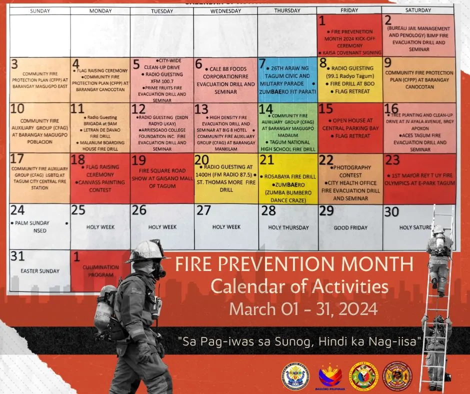 During Fire Prevention Month, the Tagum City Fire Station is actively engaging in initiatives aimed at educating and empowering the community to prevent and mitigate fire hazards. Various activities have been scheduled throughout March, including educational workshops, fire drills, community outreach programs, and interactive demonstrations.