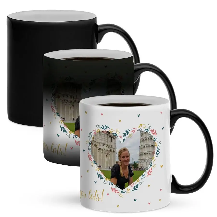 - Unique Heat-Activated Design: The mug remains black until you pour in a hot drink, then your personalized image or message appears like magic.