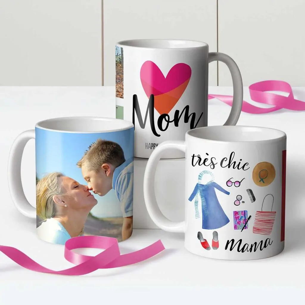 You can choose any of the following types of mugs: white mug, sparkling glitter mug, magic mug, frosted mug, and clear mug.